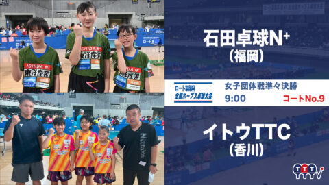【見逃し配信】ロート製薬杯 第41回全国ホープス卓球大会:女子団体戦準々決勝(コートNo.09)<2023年8月13日(日)>
