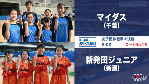 【見逃し配信】ロート製薬杯 第41回全国ホープス卓球大会:女子団体戦準々決勝(コートNo.16)<2023年8月13日(日)>