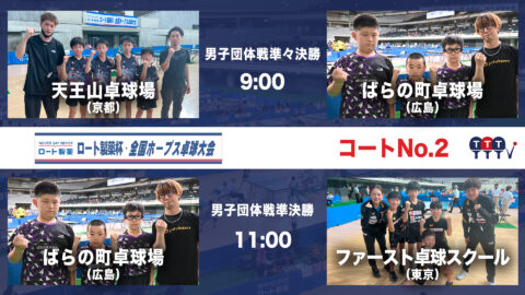 【見逃し配信】ロート製薬杯 第41回全国ホープス卓球大会:男子団体戦準々決勝&準決勝(コートNo.02)<2023年8月13日(日)>