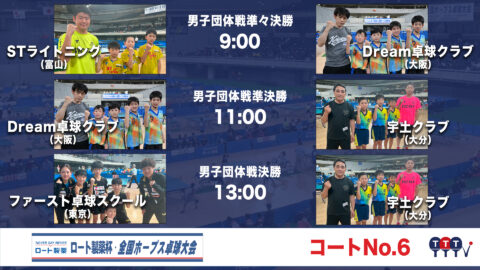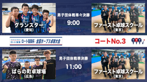 【見逃し配信】ロート製薬杯 第41回全国ホープス卓球大会:男子団体戦準々決勝&準決勝&決勝(コートNo.06)<2023年8月13日(日)>