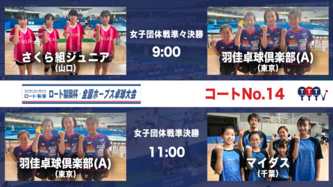 【見逃し配信】ロート製薬杯 第41回全国ホープス卓球大会:女子団体戦準々決勝&準決勝(コートNo.14)<2023年8月13日(日)>
