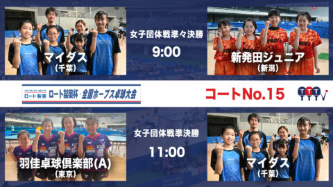 【見逃し配信】ロート製薬杯 第41回全国ホープス卓球大会:女子団体戦準々決勝&準決勝(コートNo.15)<2023年8月13日(日)>