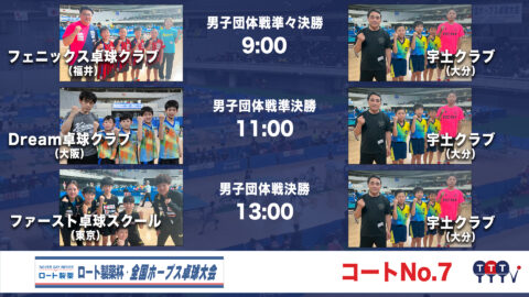 【見逃し配信】ロート製薬杯 第41回全国ホープス卓球大会:男子団体戦準々決勝&準決勝&決勝(コートNo.07)<2023年8月13日(日)>