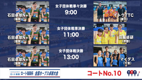 【見逃し配信】ロート製薬杯 第41回全国ホープス卓球大会:女子団体戦準々決勝&準決勝&決勝(コートNo.10)<2023年8月13日(日)>