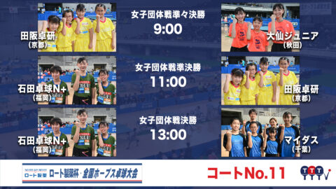 【見逃し配信】ロート製薬杯 第41回全国ホープス卓球大会:女子団体戦準々決勝&準決勝&決勝(コートNo.11)<2023年8月13日(日)>