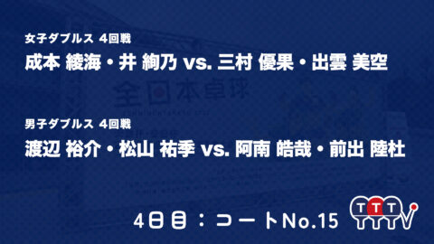 【見逃し配信】2023年全日本卓球選手権大会【4日目:1/26】:コートNo. 15 女子ダブルス&男子ダブルス(4回戦)