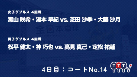 【見逃し配信】2023年全日本卓球選手権大会【4日目:1/26】:コートNo. 14 女子ダブルス&男子ダブルス(4回戦)