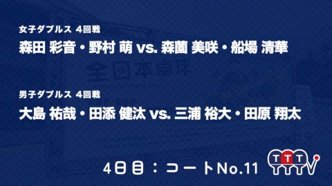 【見逃し配信】2023年全日本卓球選手権大会【4日目:1/26】:コートNo. 11 女子ダブルス&男子ダブルス(4回戦)