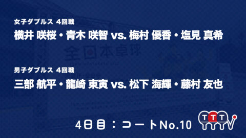 【見逃し配信】2023年全日本卓球選手権大会【4日目:1/26】:コートNo. 10 女子ダブルス&男子ダブルス(4回戦)