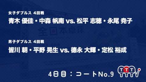 【見逃し配信】2023年全日本卓球選手権大会【4日目:1/26】:コートNo. 09 女子ダブルス&男子ダブルス(4回戦)