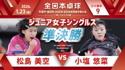 【見逃し配信】2026年全日本卓球選手権大会【4日目:1/23】:ジュニア女子準決勝 松島美空 vs 小塩悠菜(コートNo. 09)