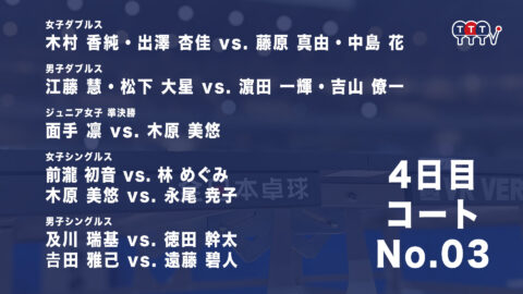 2022年全日本卓球選手権大会【4日目:1/27】:コートNo. 03<見逃し配信>