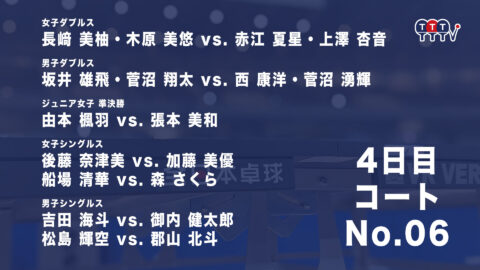 2022年全日本卓球選手権大会【4日目:1/27】:コートNo. 06<見逃し配信>