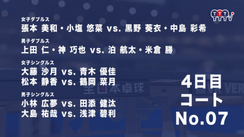 2022年全日本卓球選手権大会【4日目:1/27】:コートNo. 07<見逃し配信>