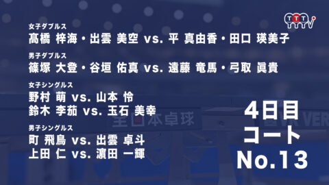 2022年全日本卓球選手権大会【4日目:1/27】:コートNo. 13<見逃し配信>