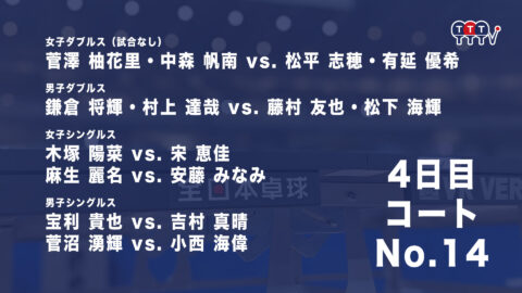 2022年全日本卓球選手権大会【4日目:1/27】:コートNo. 14<見逃し配信>