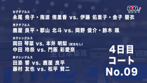 2022年全日本卓球選手権大会【4日目:1/27】:コートNo. 09<見逃し配信>