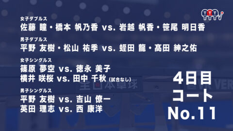 2022年全日本卓球選手権大会【4日目:1/27】:コートNo. 11<見逃し配信>