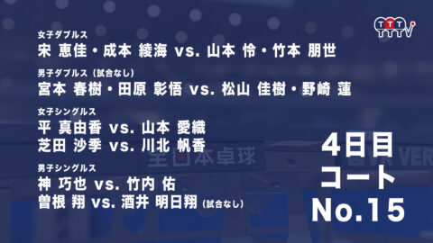2022年全日本卓球選手権大会【4日目:1/27】:コートNo. 15<見逃し配信>