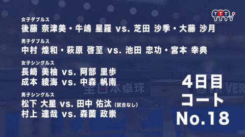 2022年全日本卓球選手権大会【4日目:1/27】:コートNo. 18<見逃し配信>