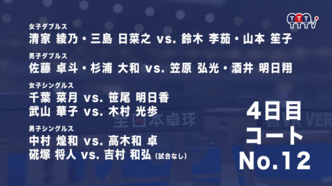 2022年全日本卓球選手権大会【4日目:1/27】:コートNo. 12<見逃し配信>