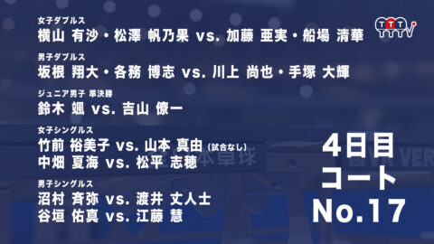 2022年全日本卓球選手権大会【4日目:1/27】:コートNo. 17<見逃し配信>