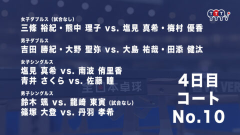 2022年全日本卓球選手権大会【4日目:1/27】:コートNo. 10<見逃し配信>