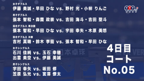 2022年全日本卓球選手権大会【4日目:1/27】:コートNo. 05<見逃し配信>
