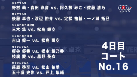 2022年全日本卓球選手権大会【4日目:1/27】:コートNo. 16<見逃し配信>