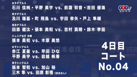 2022年全日本卓球選手権大会【4日目:1/27】:コートNo. 04<見逃し配信>