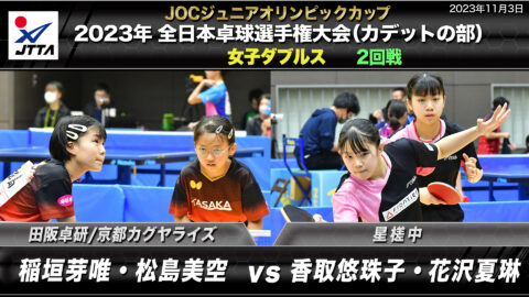 【女子ダブルス2回戦】稲垣芽唯・松島美空 vs 香取悠珠子・花沢夏琳|JOCジュニアオリンピックカップ 2023年全日本卓球選手権大会(カデットの部)