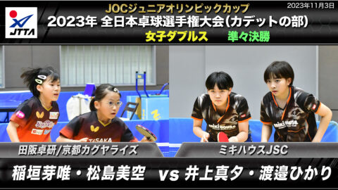【女子ダブルス準々決勝】稲垣芽唯・松島美空 vs 井上真夕・渡邉ひかり|JOCジュニアオリンピックカップ 2023年全日本卓球選手権大会(カデットの部)