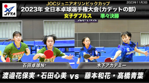 【女子ダブルス準々決勝】渡邉花保実・石田心美 vs 藤本和花・髙橋青葉|JOCジュニアオリンピックカップ 2023年全日本卓球選手権大会(カデットの部)