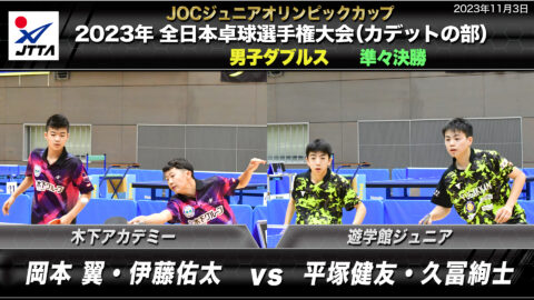 【男子ダブルス準々決勝】岡本 翼・伊藤佑太 vs 平塚健友・久冨絢士|JOCジュニアオリンピックカップ 2023年全日本卓球選手権大会(カデットの部)