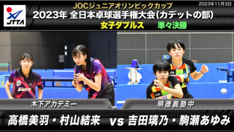 【女子ダブルス準々決勝】高橋美羽・村山結来 vs 吉田璃乃・駒瀬あゆみ|JOCジュニアオリンピックカップ 2023年全日本卓球選手権大会(カデットの部)