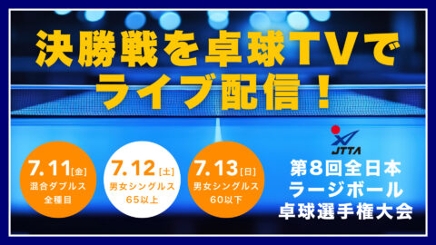第8回全日本ラージボール卓球選手権大会:各種目決勝戦を卓球TVにてライブ配信