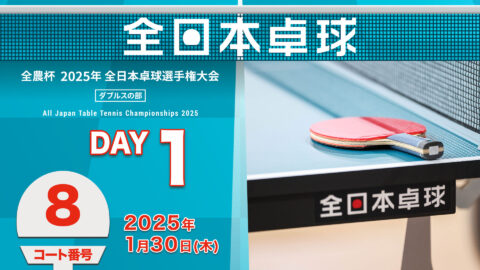 【見逃し配信】2025年全日本卓球選手権大会(ダブルスの部)【1日目:1/30】:コートNo. 08