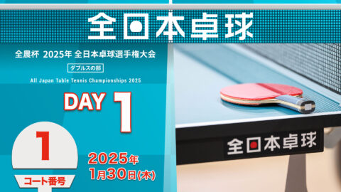【見逃し配信】2025年全日本卓球選手権大会(ダブルスの部)【1日目:1/30】:コートNo. 01