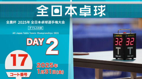 【見逃し配信】2025年全日本卓球選手権大会(ダブルスの部)【2日目:1/31】:コートNo. 17