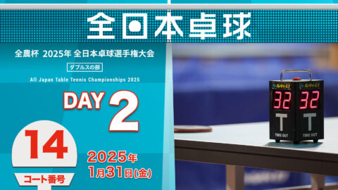 【見逃し配信】2025年全日本卓球選手権大会(ダブルスの部)【2日目:1/31】:コートNo. 14