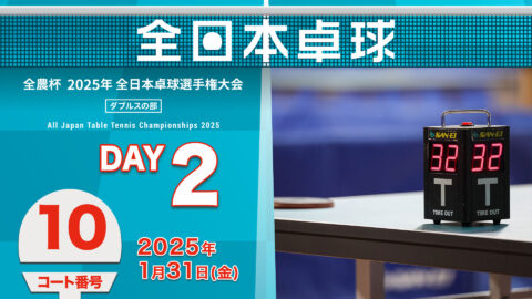 【見逃し配信】2025年全日本卓球選手権大会(ダブルスの部)【1日目:1/30】:コートNo. 02