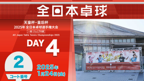 【見逃し配信】2025年全日本卓球選手権大会【4日目:1/24】:コートNo. 02