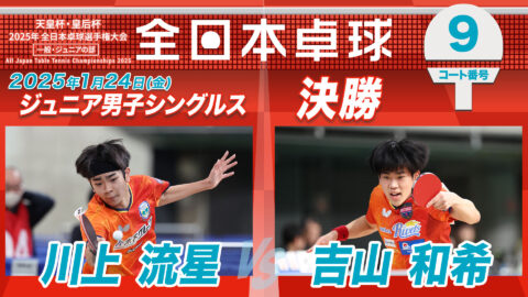 【見逃し配信】2025年全日本卓球選手権大会【4日目:1/24】:ジュニア男子決勝 川上流星 vs 吉山和希(コートNo.09)