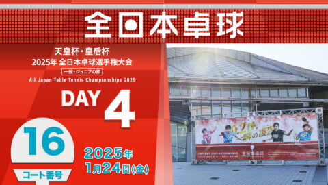 【見逃し配信】2025年全日本卓球選手権大会【4日目:1/24】:コートNo. 16
