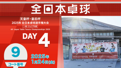 【見逃し配信】2025年全日本卓球選手権大会【4日目:1/24】:コートNo. 09