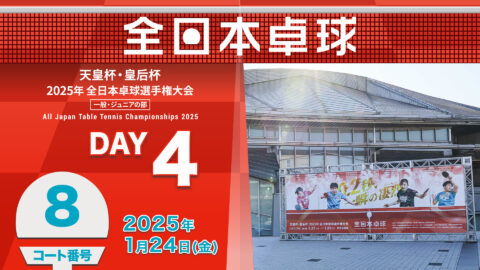 【見逃し配信】2025年全日本卓球選手権大会【4日目:1/24】:コートNo. 08
