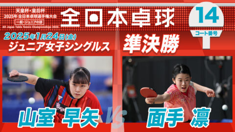 【見逃し配信】2025年全日本卓球選手権大会【4日目:1/24】:ジュニア女子準決勝 山室早矢 vs 面手凛(コートNo.14)