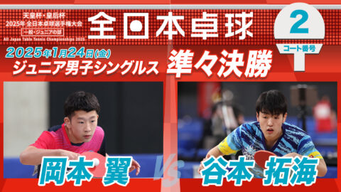 【見逃し配信】2025年全日本卓球選手権大会【4日目:1/24】:ジュニア男子準々決勝 岡本翼 vs 谷本拓海(コートNo.02)