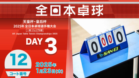 【見逃し配信】2025年全日本卓球選手権大会【3日目:1/23】:コートNo. 12
