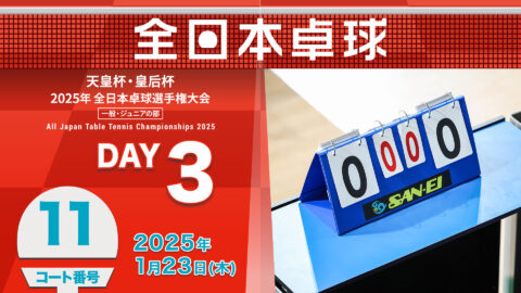 【見逃し配信】2025年全日本卓球選手権大会【3日目:1/23】:コートNo. 11
